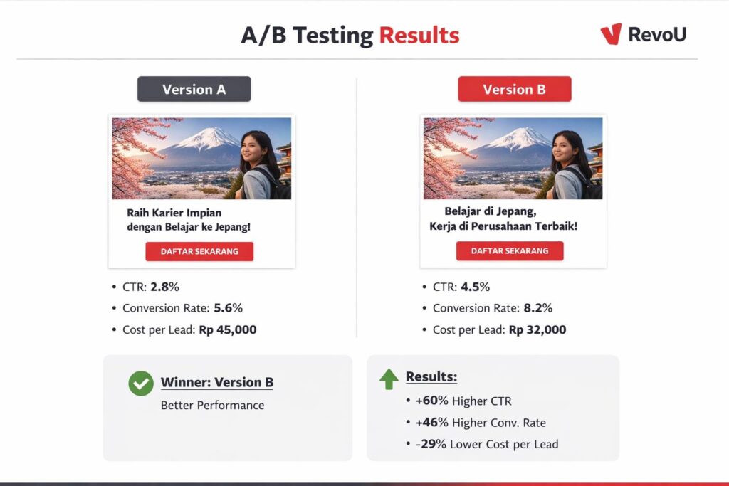 - Buat A/B testing sendiri – Kalau punya produk sendiri (bisa jasa atau affiliate), test copy dari kelas. Screenshot data performanya. Ini bikin portofolio kamu makin kuat.