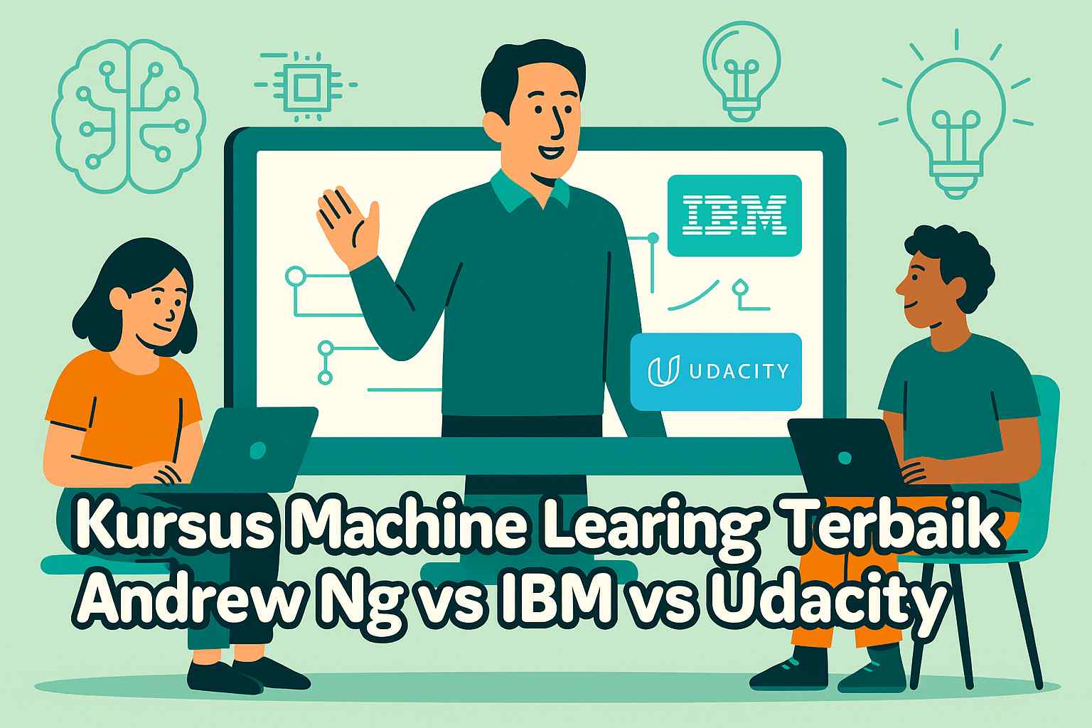 Pernah nggak sih kamu bingung mau mulai belajar Machine Learning dari mana? Internet penuh kursus, tapi takut salah pilih: yang terlalu teori bikin ngantuk, yang terlalu praktis nggak kuat fundamental. Aku pernah di sana. Setelah habis waktu (dan uang) coba tiga kursus populer—Andrew Ng, IBM, sama Udacity—ini cerita jujur plus perbandingan lengkapnya biar kamu nggak coba-coba sendirian.