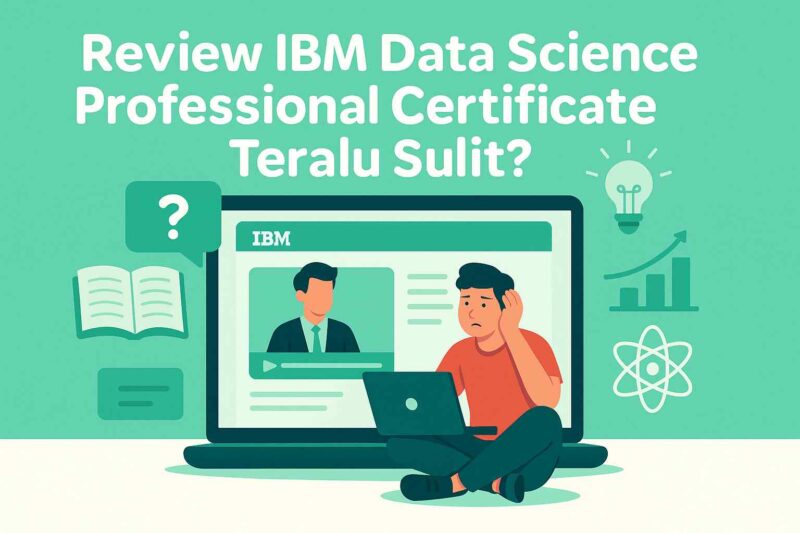 “Terlalu sulit buat pemula?” Itu pertanyaan pertama yang muncul di kepalaku waktu melihat silabus IBM Data Science Professional Certificate. Kamu nggak sendirian. Banyak yang ngeliat porsi materinya langsung mundur. Tapi setelah selesaikan semua 12 kursusnya, jawabannya nggak hitam-putih. Ini bukan soal sulit atau gampang, tapi soal ekspektasi dan persiapan.
